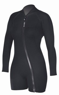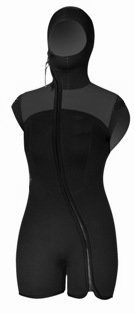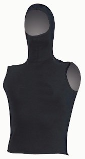 The hooded step-in vest will do everything the chicken vest does plus double up on the lower torso/groin and will usually be of 5 or 7mm neoprene. This is worn over the fullsuit.